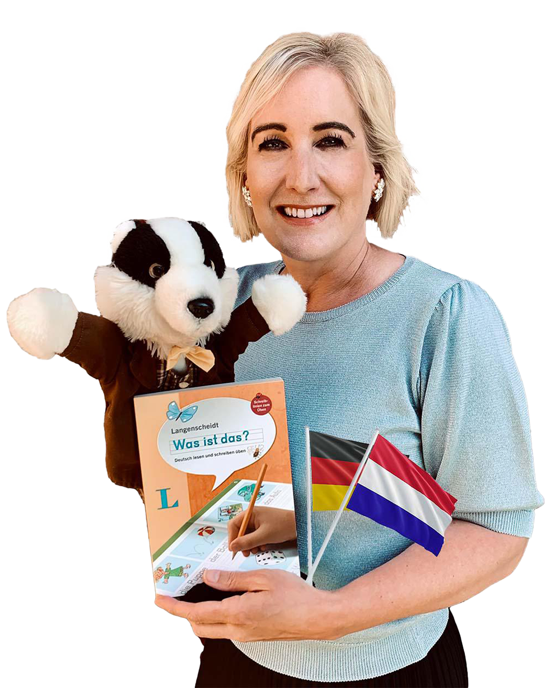 Veilig, speels & doelgerichtDe Duitse Juf & Karl brengen Duits tot leven op basisscholen in de grensregio. Niet als schoolvak, maar als ontdekkingsreis waarin kinderen taal ervaren door te doen. Sinds 2017 reist Franzis Pranger-Wiese - samen met haar bijzondere assistent Karl - iedere vrijdag langs scholen in de gemeente Oldambt. Die vaste vrijdag is voor veel kinderen een hoogtepunt: herkenbaar, vertrouwd en altijd vol energie. Karl is geen gewone handpop. Hij spreekt alleen Duits, verstaat alles, houdt van Duitse Schlagermuziek en is hopeloos verliefd op Helene Fischer. Dankzij zijn humor en speelse karakter durven zelfs verlegen kinderen Duits te spreken - vaak eerst tegen Karl, daarna tegen elkaar. Franzis combineert haar ruime onderwijservaring met enthousiasme en structuur. De lessen zijn veilig, speels en doelgericht: kinderen bouwen vertrouwen op en ontdekken dat Duits leuk is.